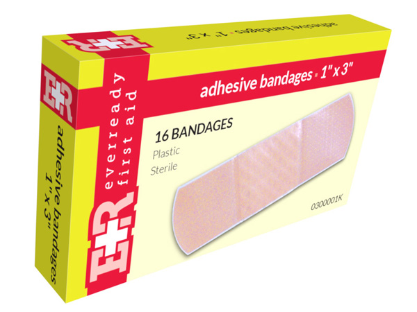 ADHESIVE BANDAGES, SHEER PLASTIC, 1” X 3”, IN KIT UNIT BOX, 16'S
