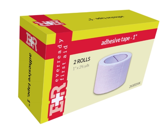 This adhesive first aid tape is waterproof to keep bandages in place even when wet. The tape measures 1" wide.