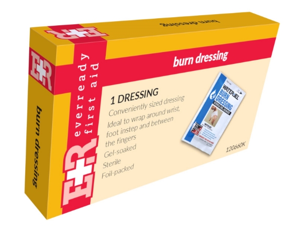 - This emergency burn dressing helps relieve pain and cools burns quickly without sticking