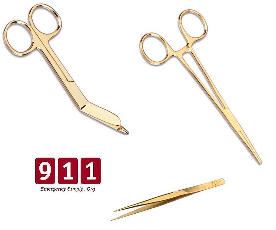 Full Gold Instrument Set Kelly Forceps Lister Bandage Splinter