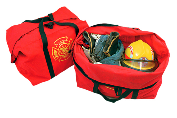 The zippered top of this bag allows it to be easily unloaded and loaded with your complete set of turnout gear along with miscellaneous items. 11⁄2” strap runs completely under the bag and Velcro® strips hold the handles together for a quick trip. Made of red Cordura® nylon. #10 black zipper. Measures 24”L x 17”H x 14”W. 5,700 cu. in. Wt. 30 oz.