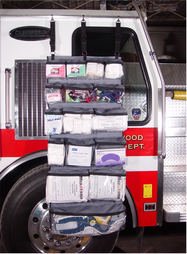When disaster strikes are you ready to respond with an organized pack that has numerous supplies for mass casualties? This pack is designed for treating patients in an open scene environment or in a field clinic situation. The pack features 16 zippered pockets constructed of heavy clear vinyl and nylon. The stored supplies are easily visible and accessible. A variety of pocket sizes allows for supplies to be stored in their original containers or loose. Three (3) strong plastic hooks and straps allow for the pack to be hung in a tent, from a vehicle or wall. The pack can be stored in the Cordura® carrying bag available in five colors that has double zippers for easy access and security. The carrying bag also has zippered clear label pocket for identification . Be prepared for the unknown with R&B's "DISASTER SUPPLY PACK". Carrying Bag available in Gray, Green, Blue, Red and Yellow. Inside supply pack is gray only. Measures: 56"L x 25"W x 4½"D.