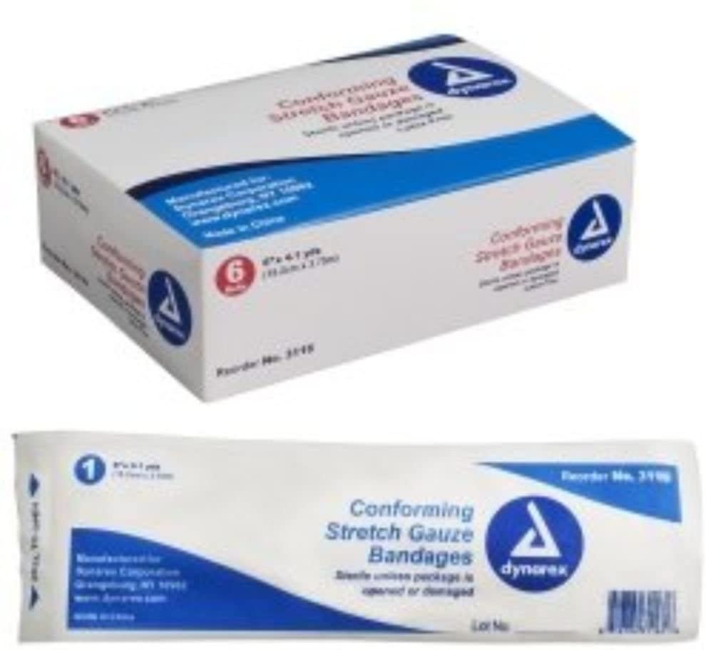 Conforming Bandage Stretch Gauze 6" x 4 Yard Rolls 6 Pack Sterile