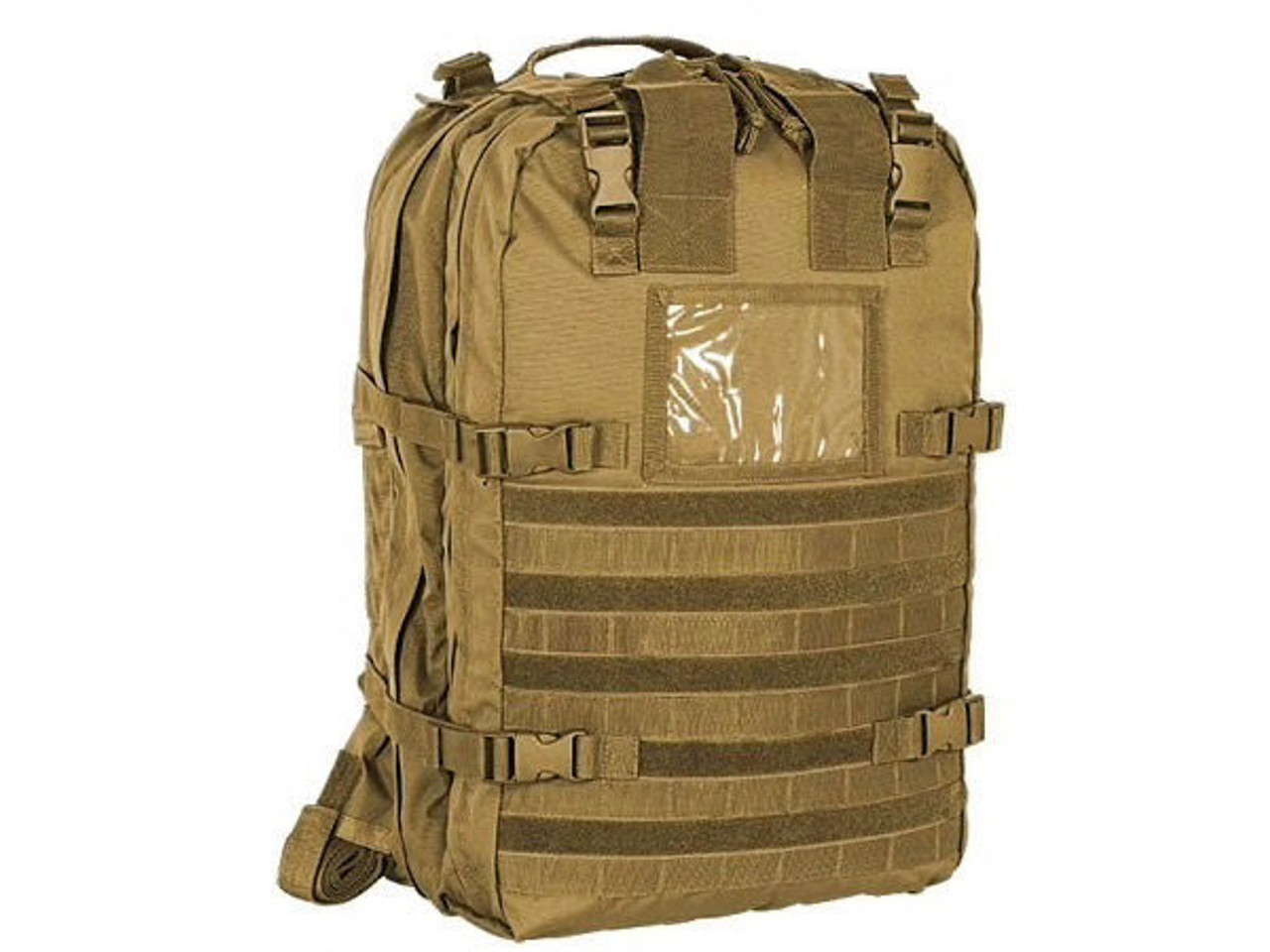 A panel loading pack designed to meet the demands of medical rescue professionals. Built with rugged pack cloth for strength and abrasion resistance. Custom designed so all panels layout flat for easy access and quick response. Pockets, pouches and straps galore for custom placement of supplies and instruments. Two removable carry bags for airways, tubes, masks, and resuscitation kits. The most comprehensive rescue response pack weve seen. Custom padded comfort back, contoured, padded, adjustable shoulder straps, padded, adjustable waist belt, top and side compression straps, with carry handles, side strap storage pouches, bottom attachment loops for bedding or bags, metal drain holes, Hook-n-loop panel for department I.D. patch or blood type patch and clear personal I.D. panel. Measures 13"L x 8"W x 21"H. Red only. Weighs 7.16 lbs.