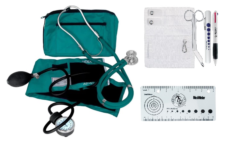 - Nylon pocket organizer, bandage scissor, disposable penlight, Medimeter, and a 3-color chart pen.