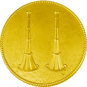 Hat Pin Bugles Disc 2 Side by Side Gold Captain Screw Post Smooth