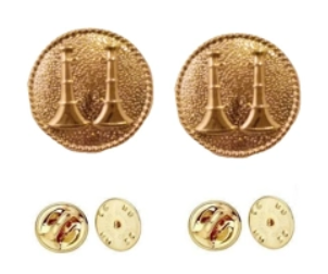 Collar Pins Bugles Disc 2 Bugles Side by Side Gold Captain