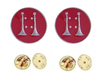 Collar Pins Bugles Disc 2 Bugles Side by Side Silver Captain Red
