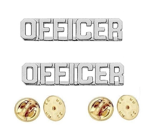 Collar Pins Insignia OFFICER Letters Nickel Silver