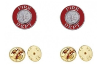 Fire Dept Red Round Silver Disc Collar Insignia Set