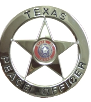 Texas Peace Officer Silver Shield Badge Star Center Silver